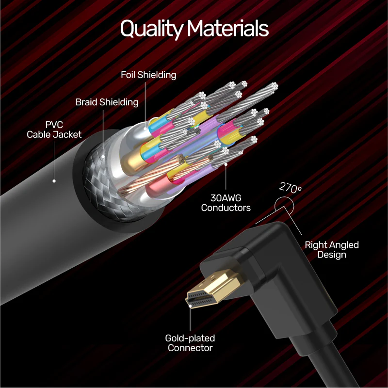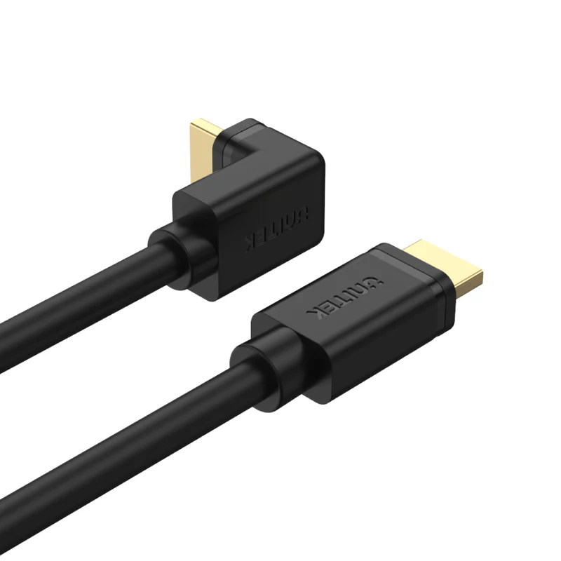 Making it ideal for wall-mounted devices and situations with limited space. The right angle connector helps prevent excessive bending of the cable, ensuring durability and a tidy installation. Perfect for optimizing space while maintaining high-quality video and audio performance, this cable is a practical solution for your AV setup.