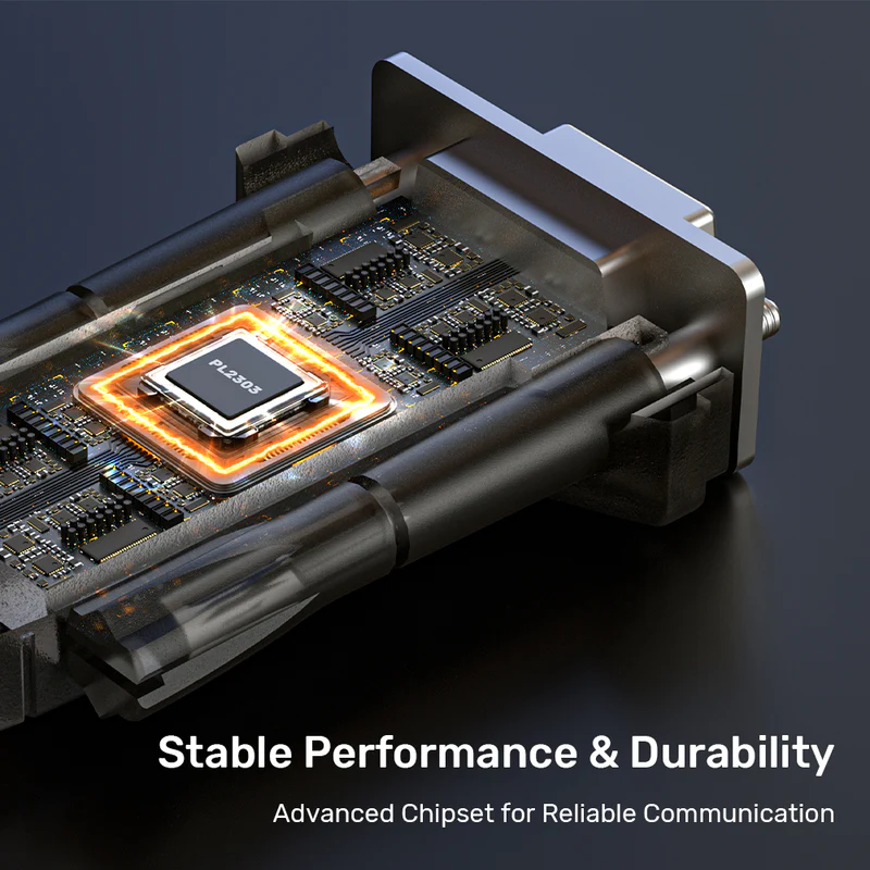 Experience precise digital control with the USB-A to RS232 (DB9F) Serial Cable, designed for industrial-grade RS232 communication. Featuring the advanced Prolific PL2303 chipset, this cable ensures seamless compatibility with various Windows, Linux, and macOS operating systems. Elevate your data transfer speeds up to 1 Mbps, making it an ideal choice for reliable and efficient data management in professional applications.