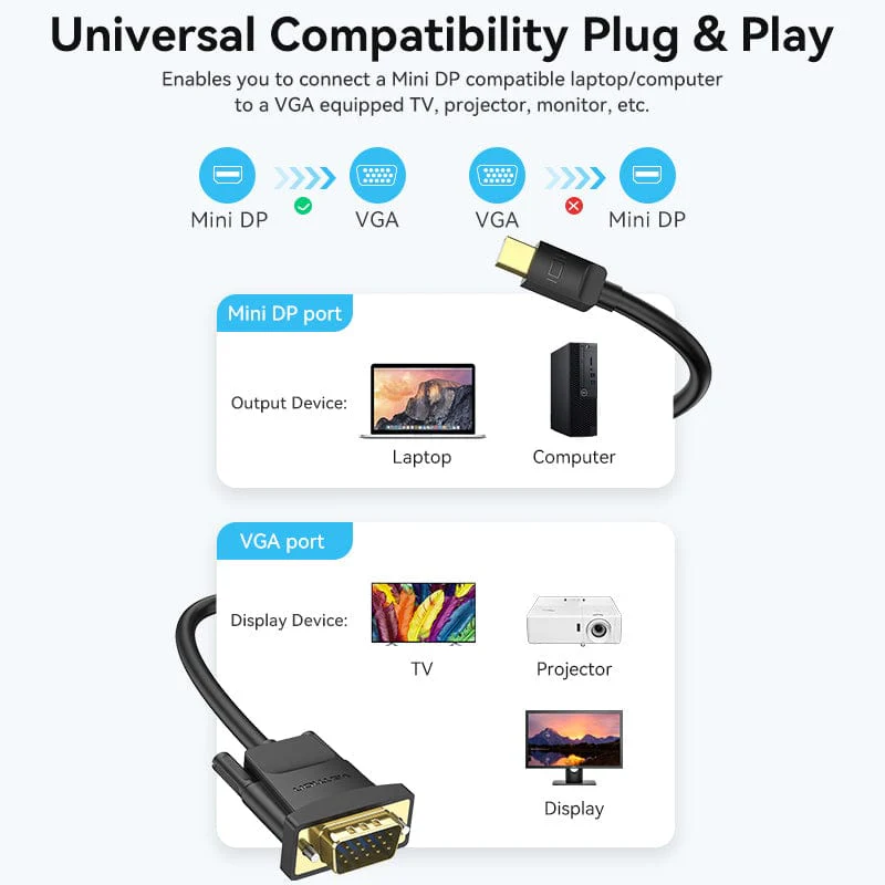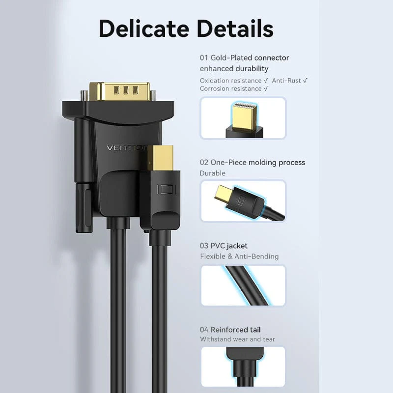 Be the first to review “Vention Mini DP Male to VGA Male HD Cable 2M Black”